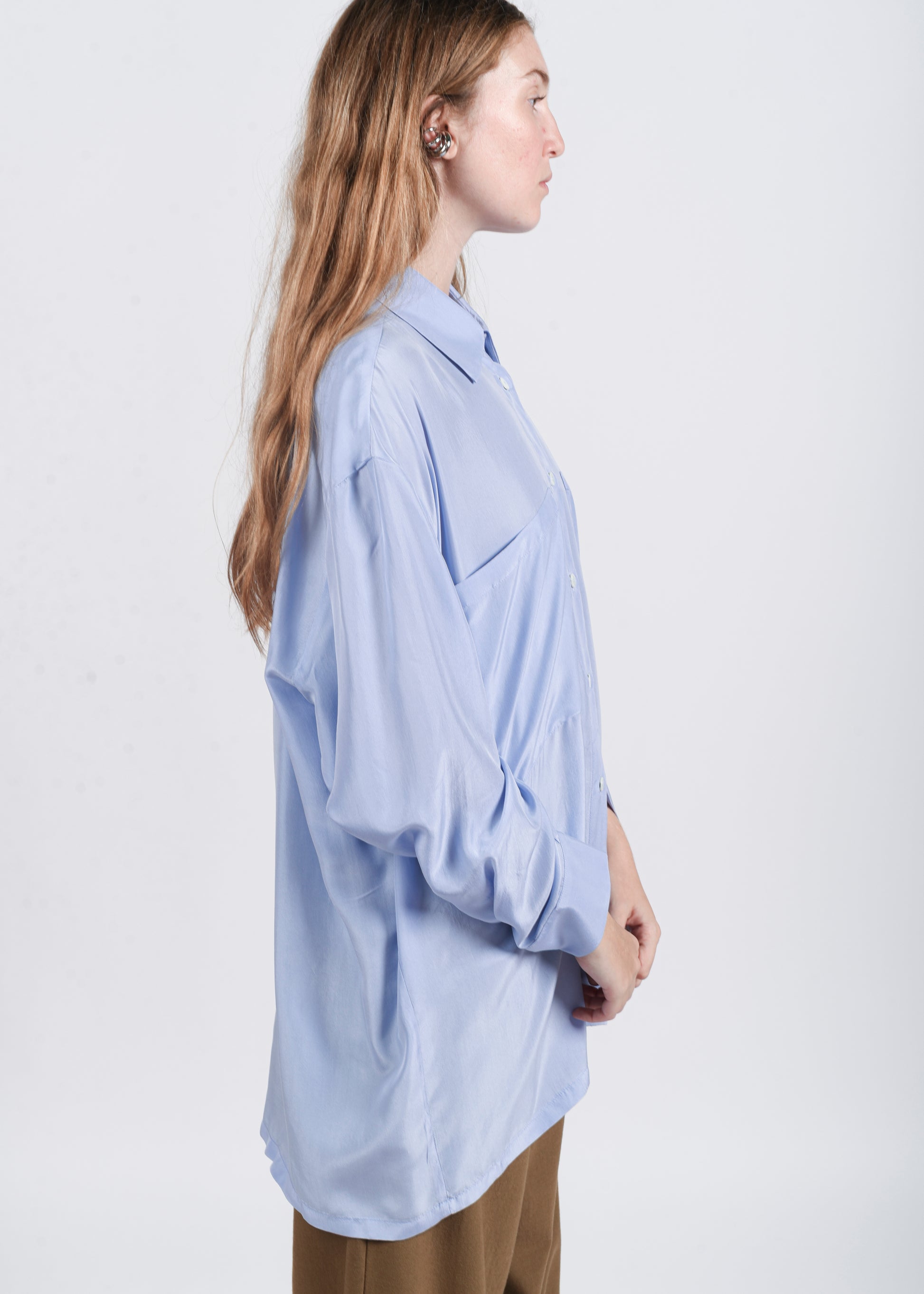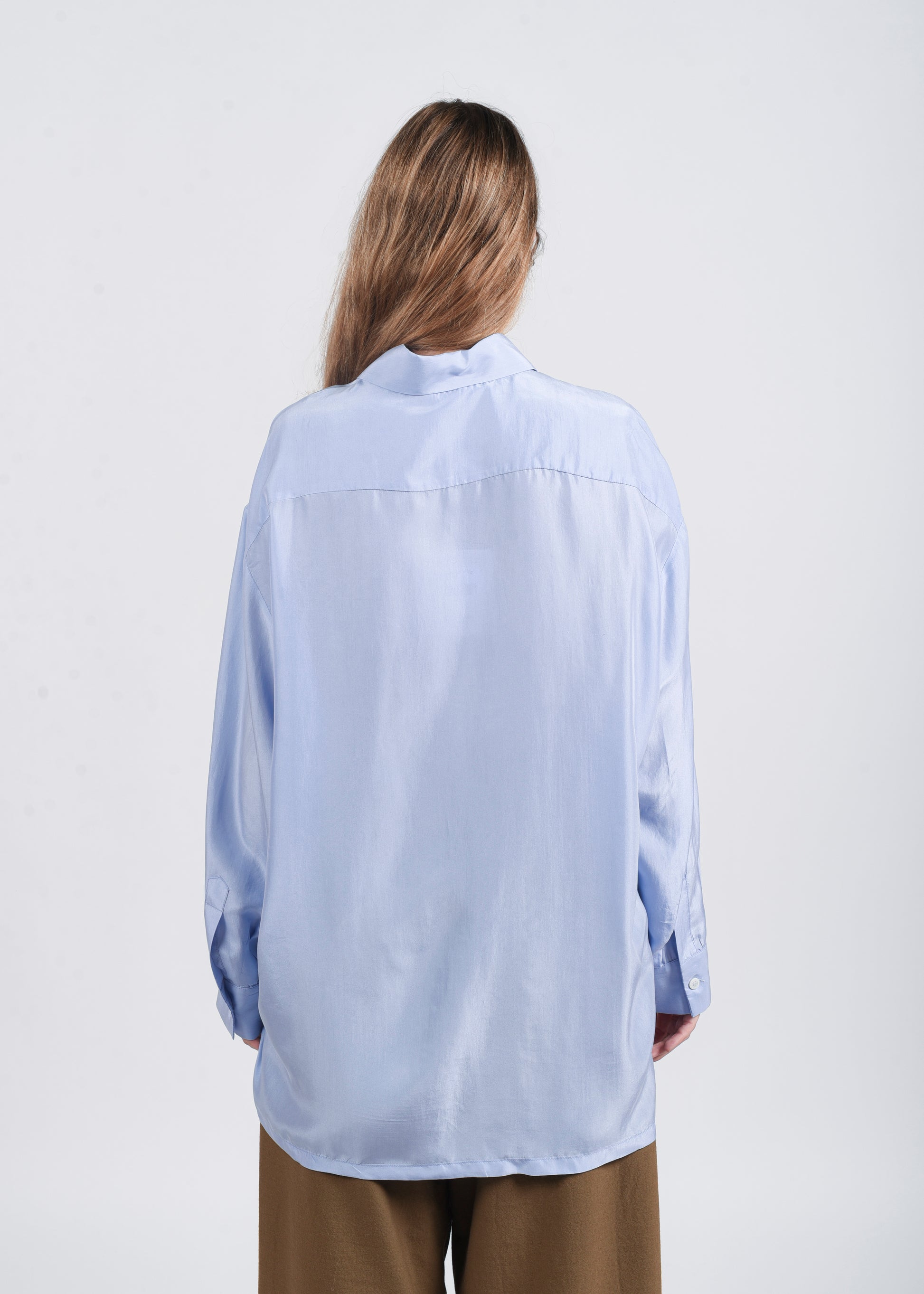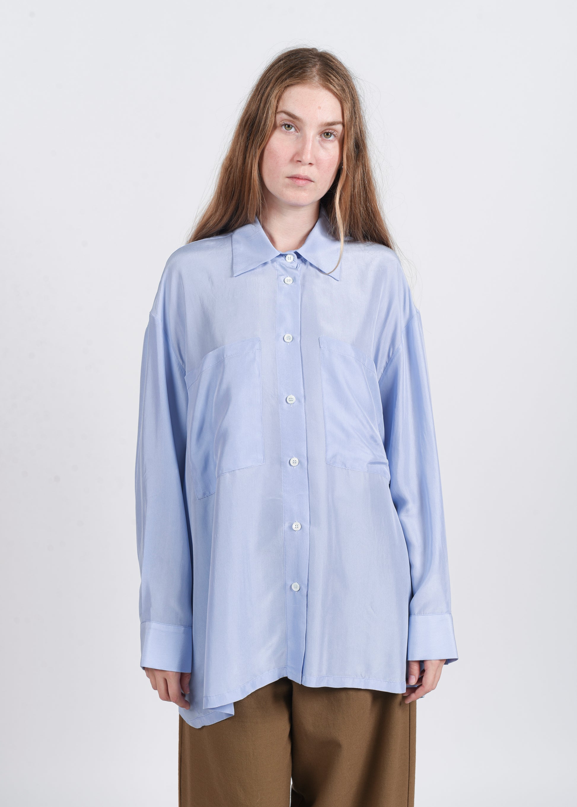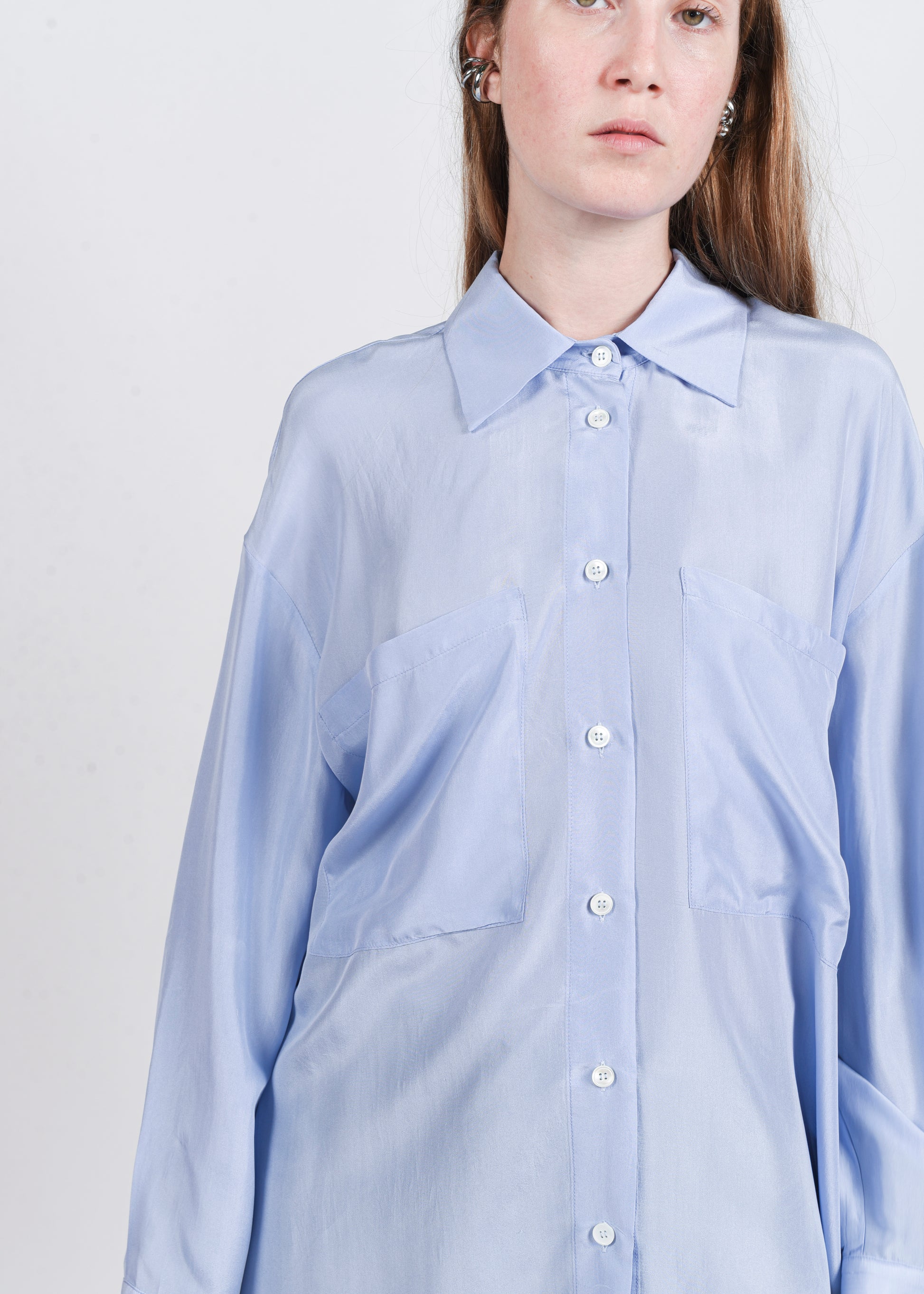 Camicia over in 100% seta, con ampie tasche frontali e un fit morbidissimo che avvolge con leggerezza ed eleganza.