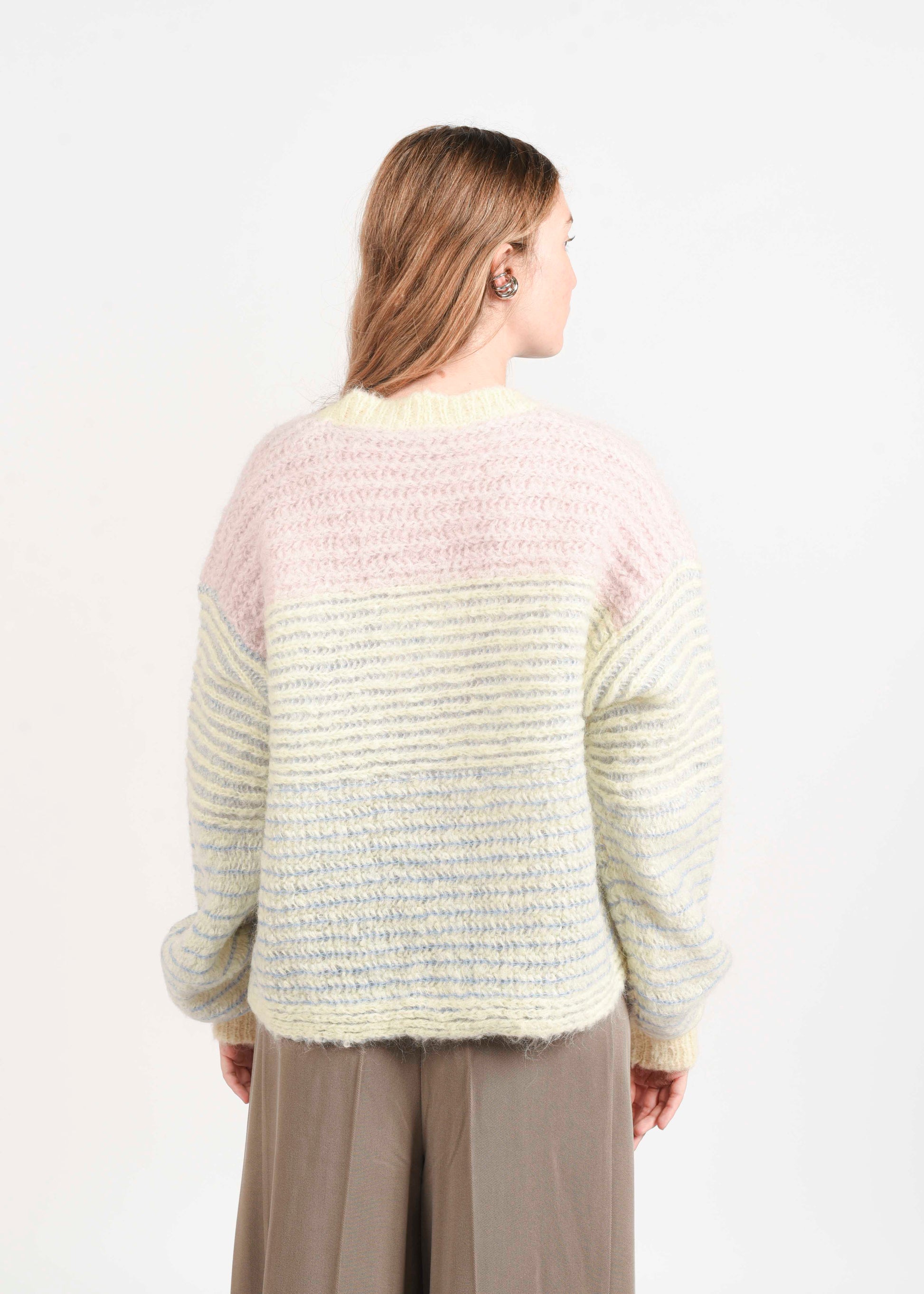 Composizione: 43% baby alpaca, 43% super kid mohair, 14% poliammide.