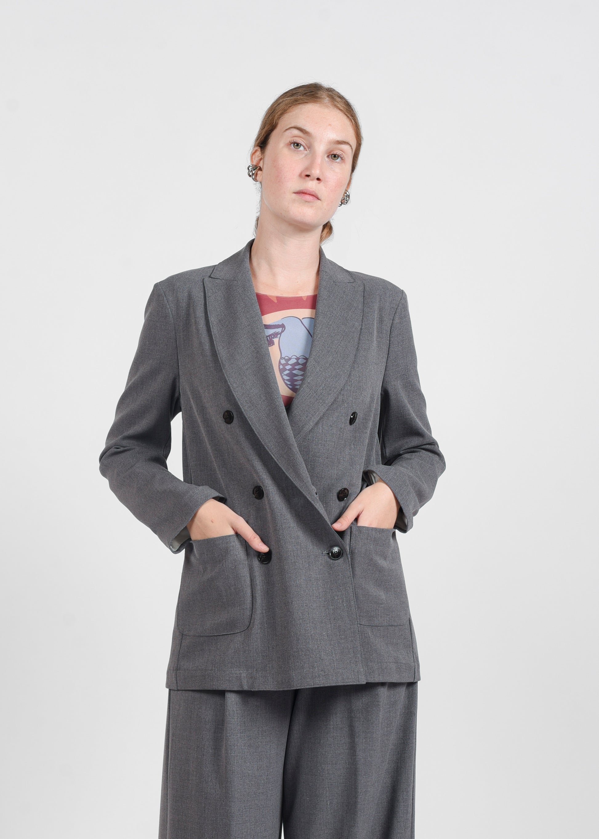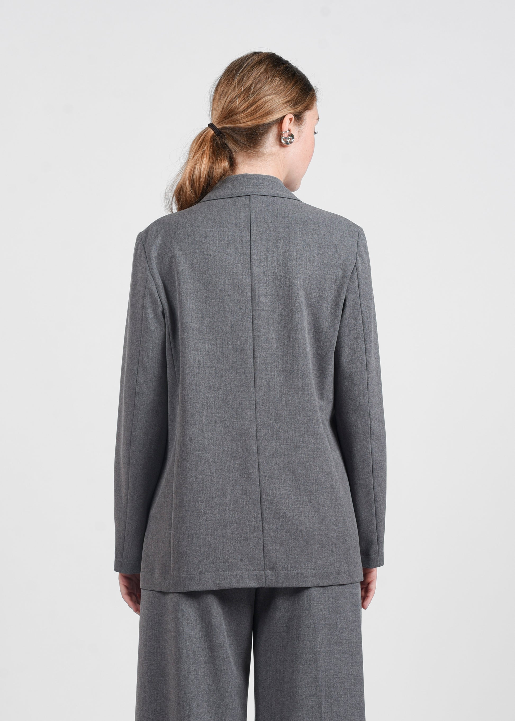 Giacca lunga doppiopetto dal taglio morbido, caratterizzata da una vestibilità rilassata e linee fluide. Dotata di pratiche tasche anteriori, unisce comfort e stile in un capo versatile, perfetto per completare look sia eleganti che casual.
