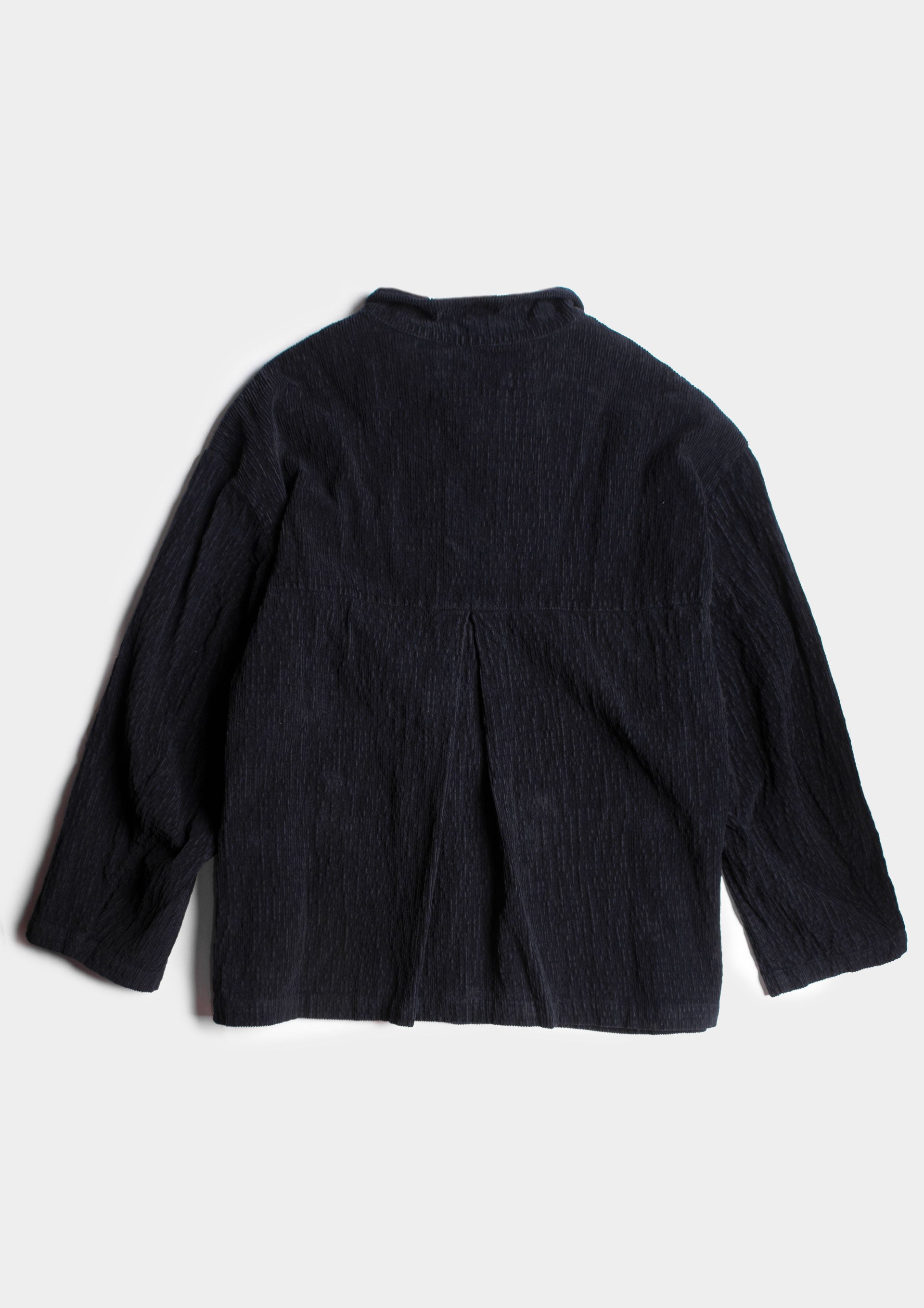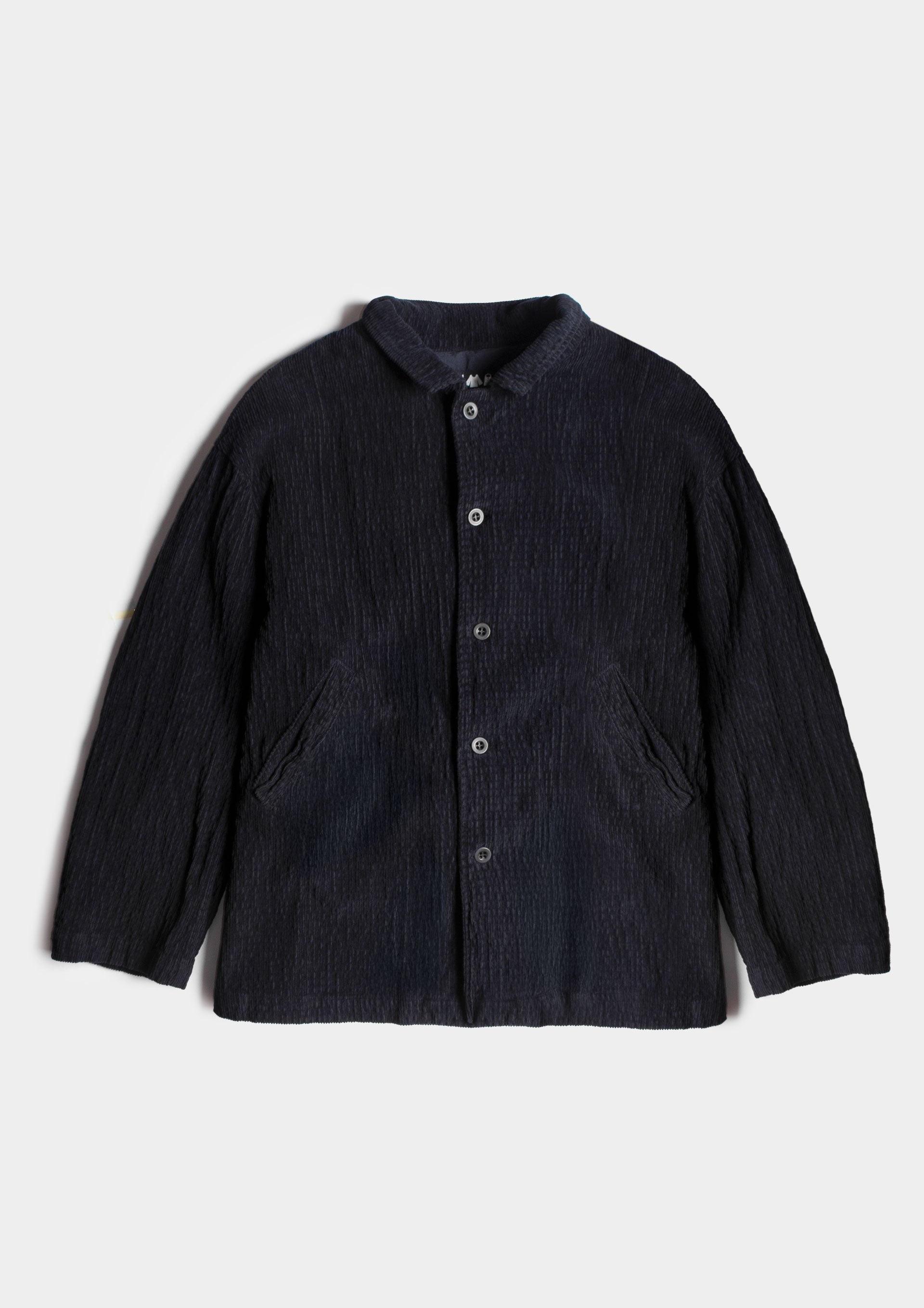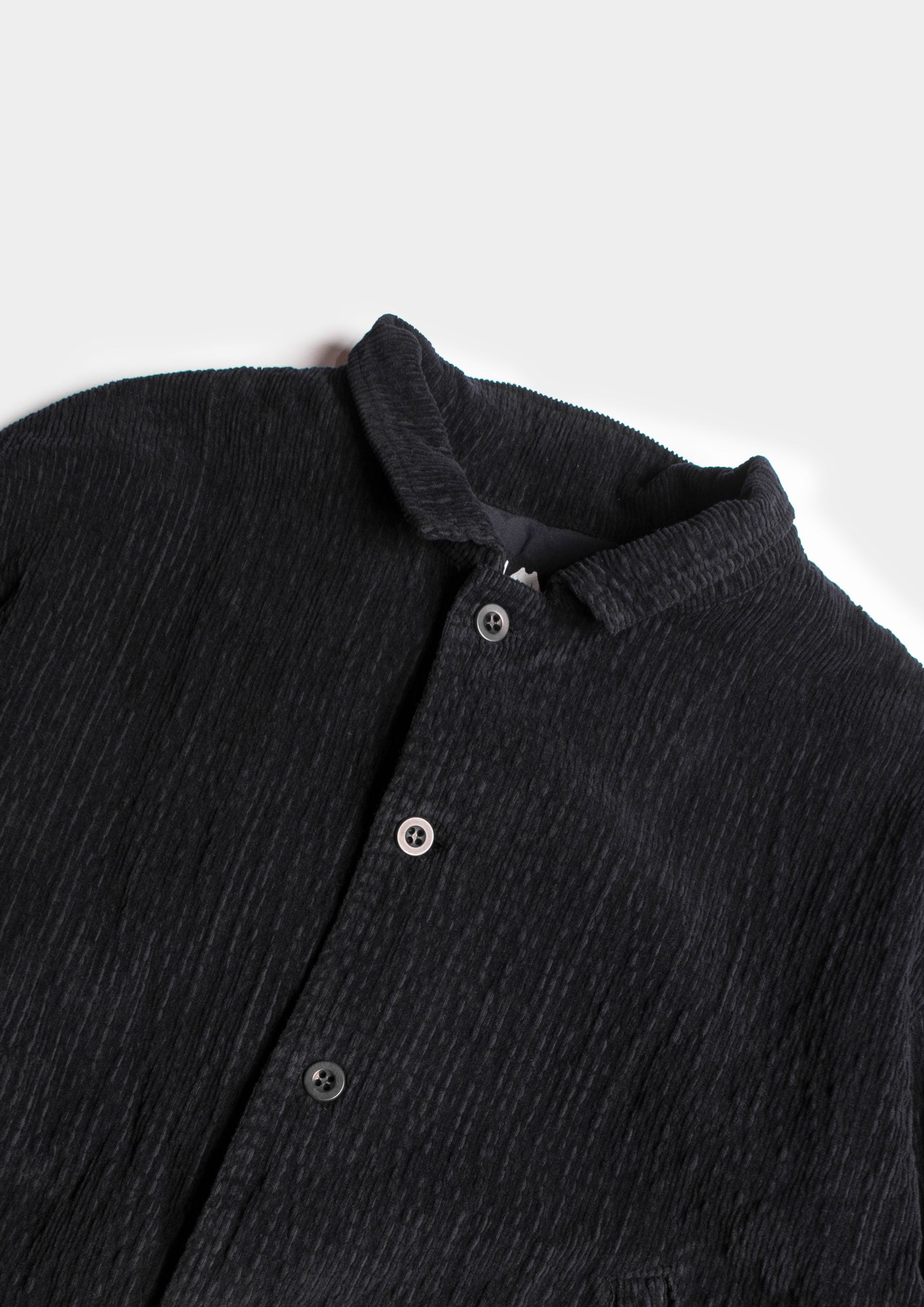 Giacca over dal taglio a scatola in velluto a coste irregolari, con tasche frontali e pinces larga sul retro.