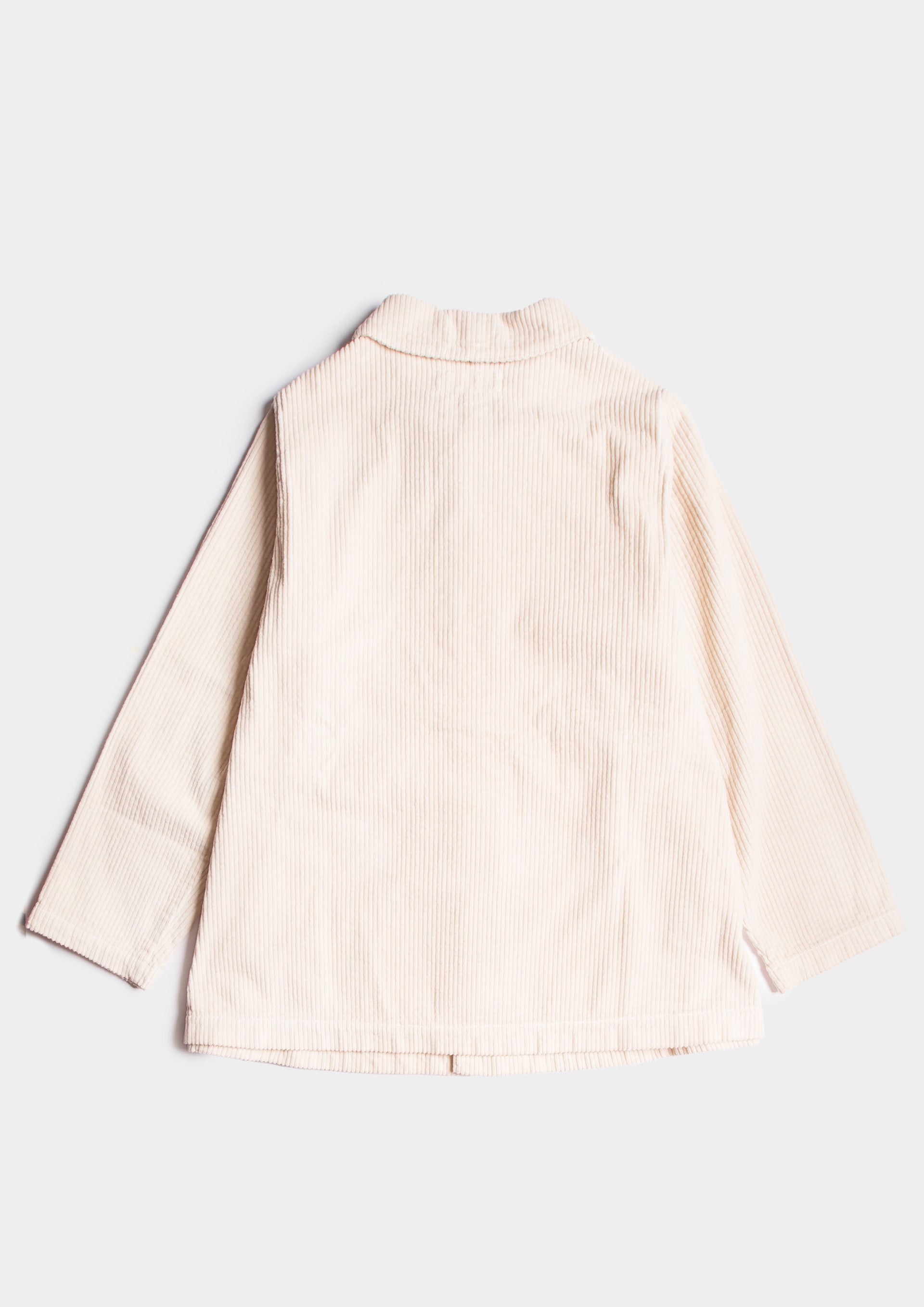 Giacca over svasata in velluto a coste, con tasche a filetto e bottoni.