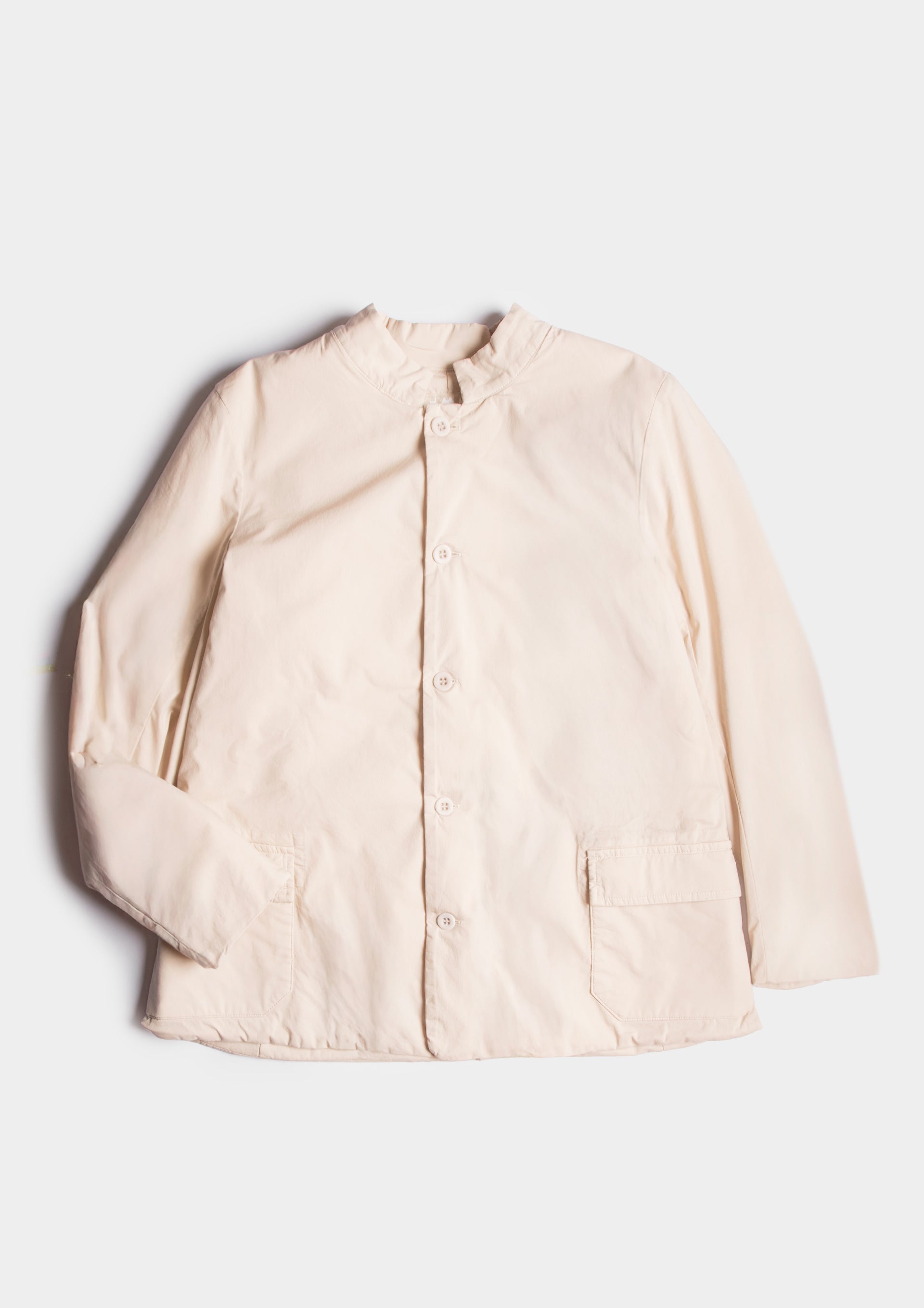 Giacca dal taglio a scatola con tasche anteriori e bottoni, collo alla coreana. Realizzata in tessuto impermeabile e imbottita con Thermore.