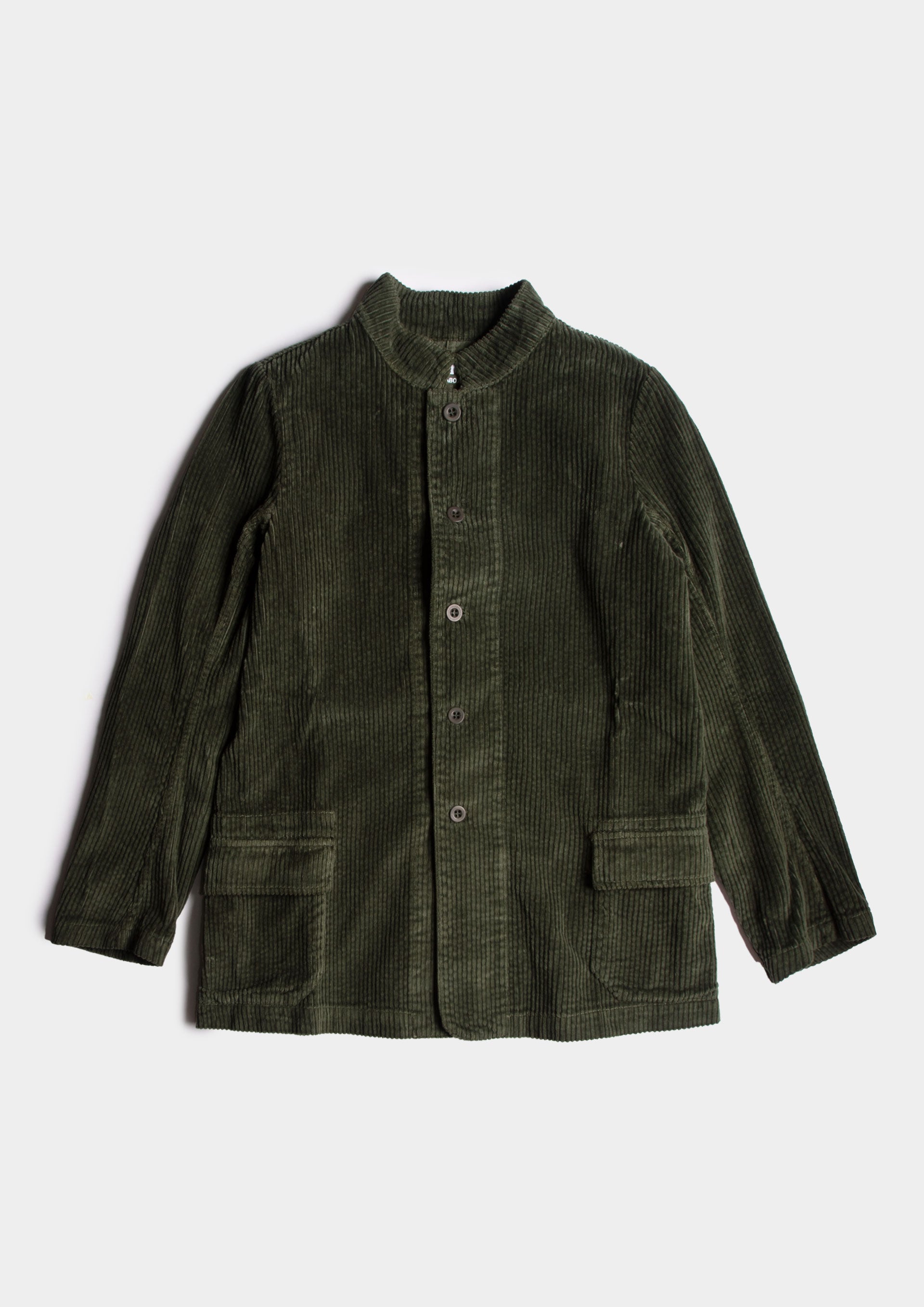 Giacca in velluto a coste con tasche e bottoni, collo alla coreana.
