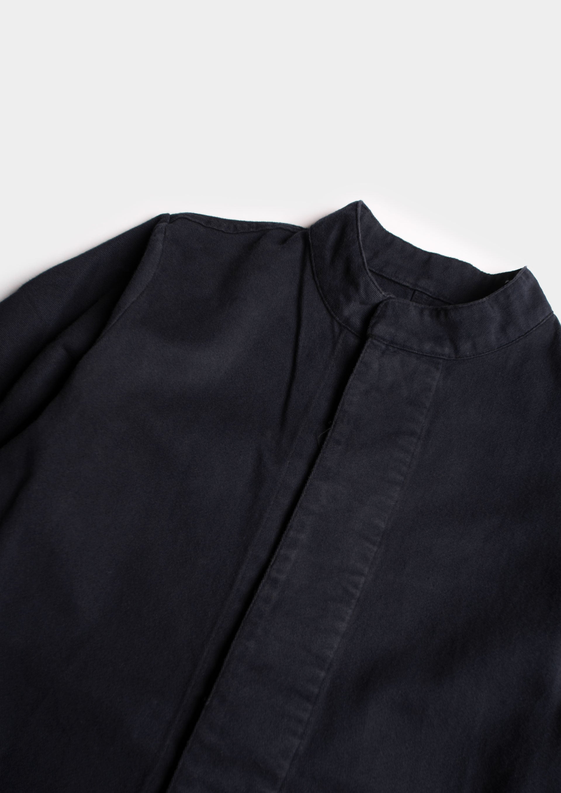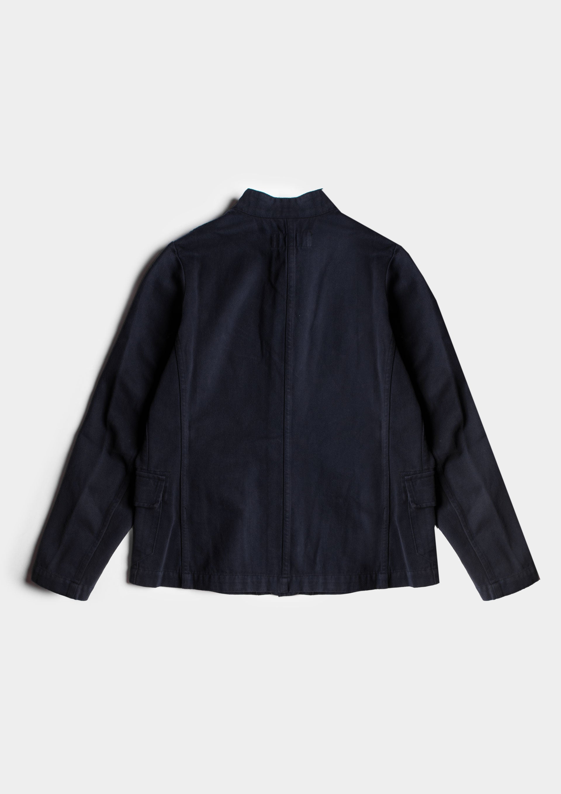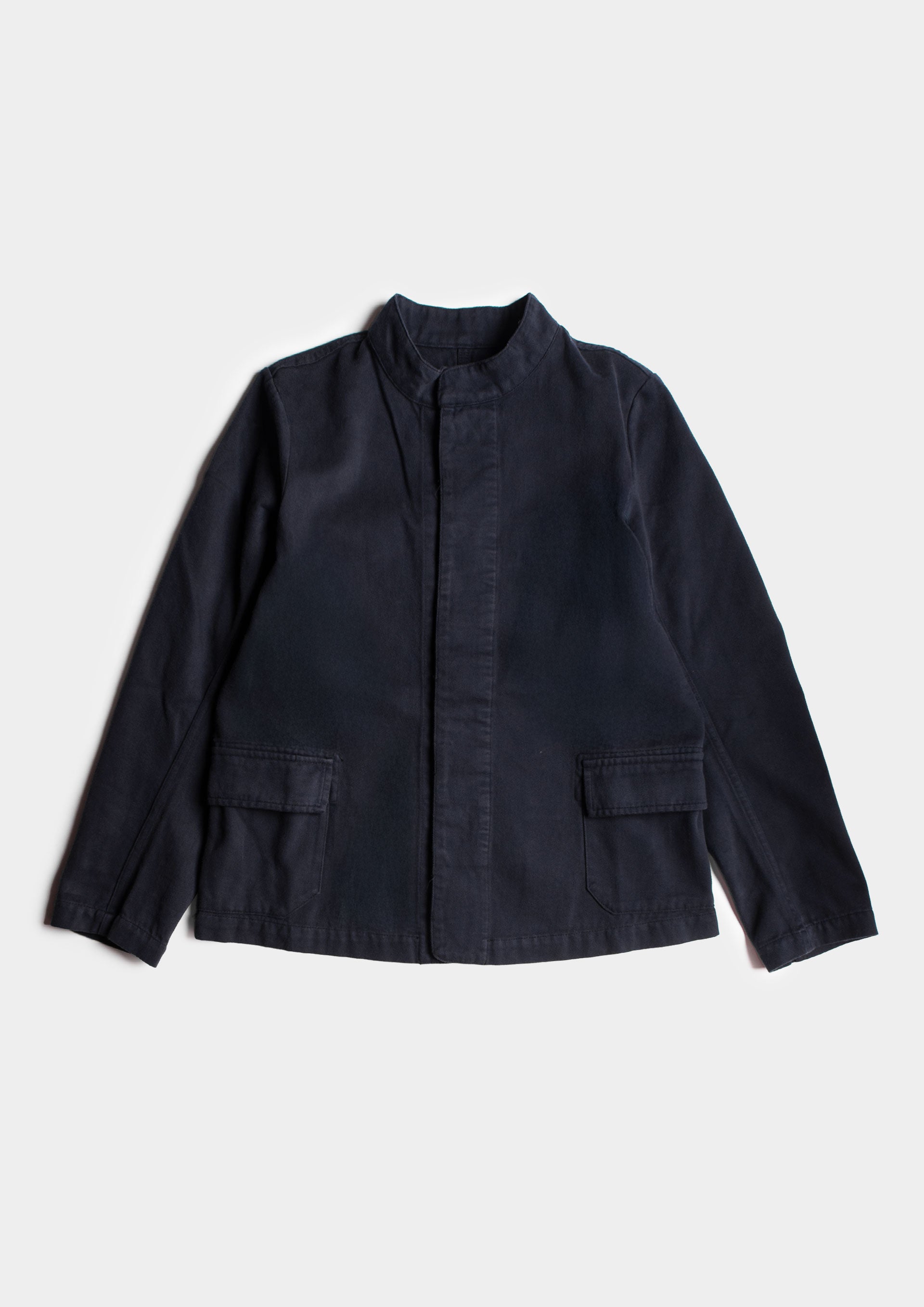 Giacca dal taglio a scatola con tasche frontali e collo alla coreana. Chiusura con bottoni a scomparsa.