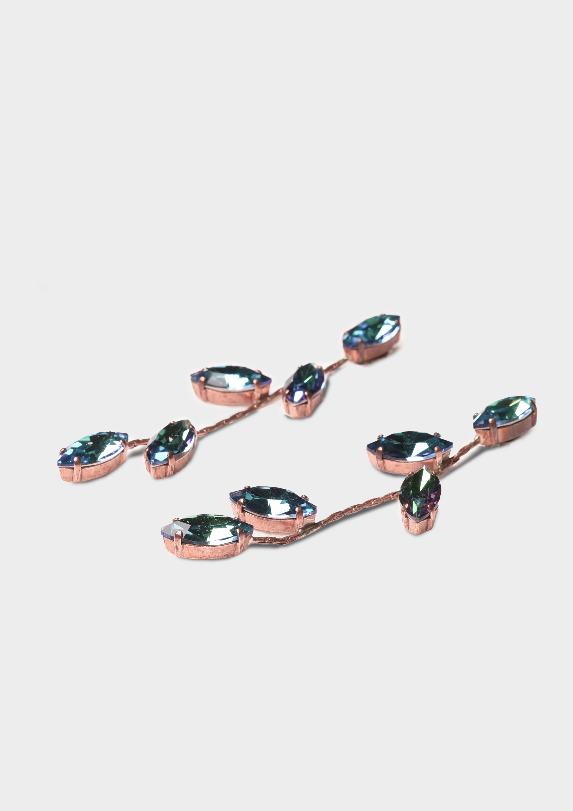 Gioielli realizzati in bronzo naturale con cristalli incastonati colorati, impreziositi da una lavorazione taglio brillante