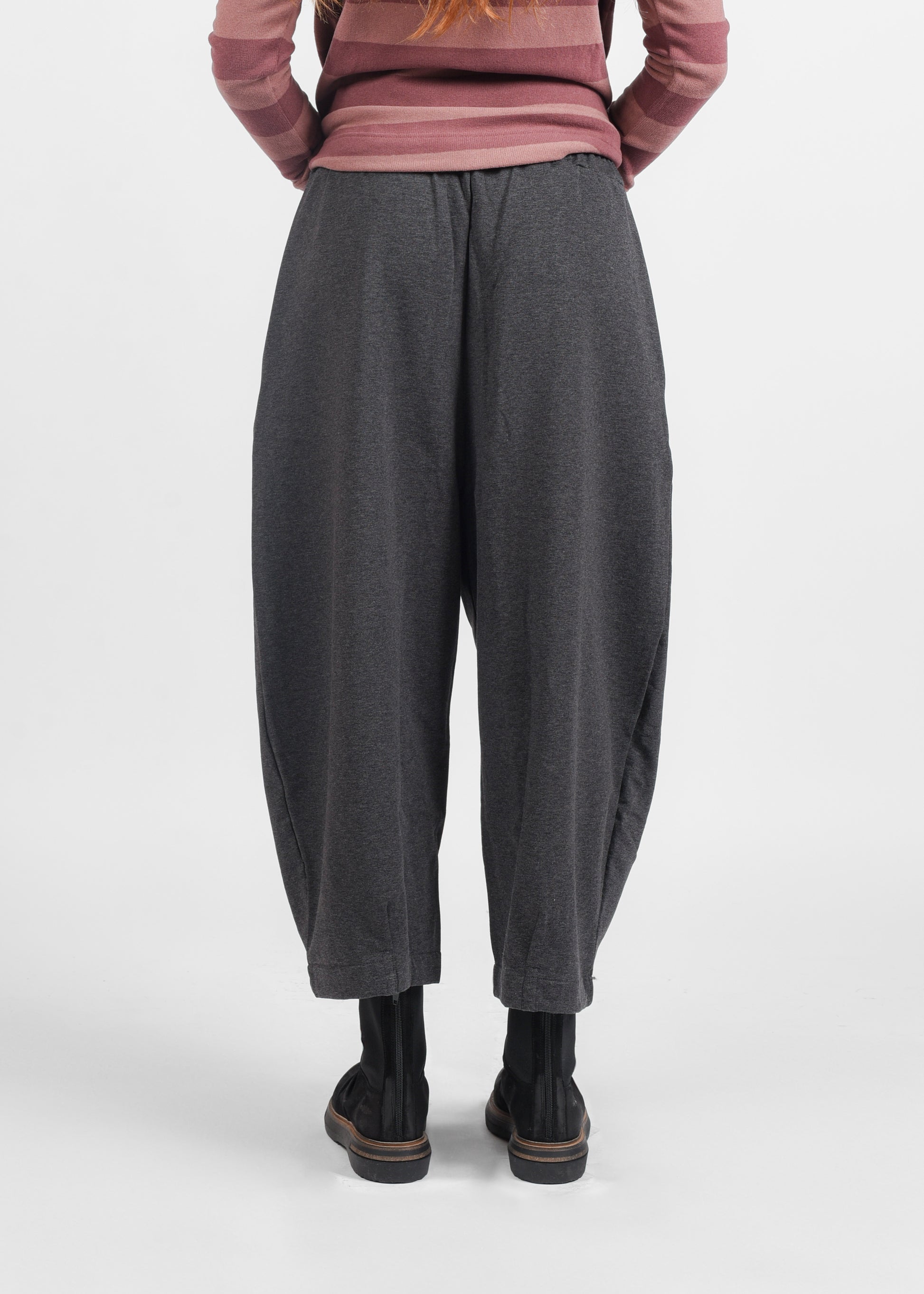 Pantalone modello ovetto con pence e tasche frontali, elastico in vita per una vestibilità comoda. Modello di lunghezza non eccessiva, foderato internamente in felpa per maggiore comfort e calore. Realizzato in 95% cotone e 5% elastan, garantisce elasticità e morbidezza al tatto.