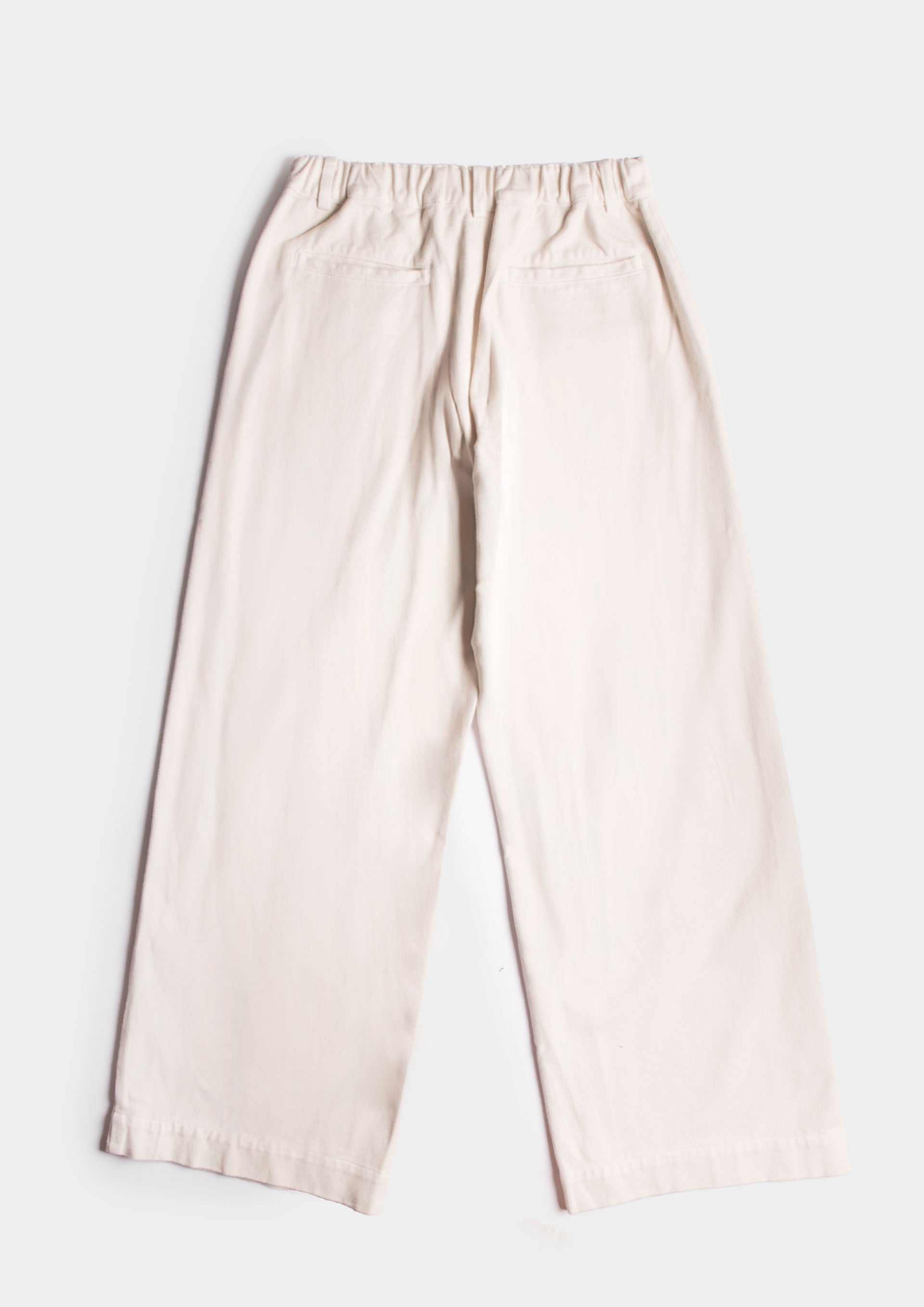 Pantalone palazzo in flanella con elastico dietro (in vita) e tasche a filetto.