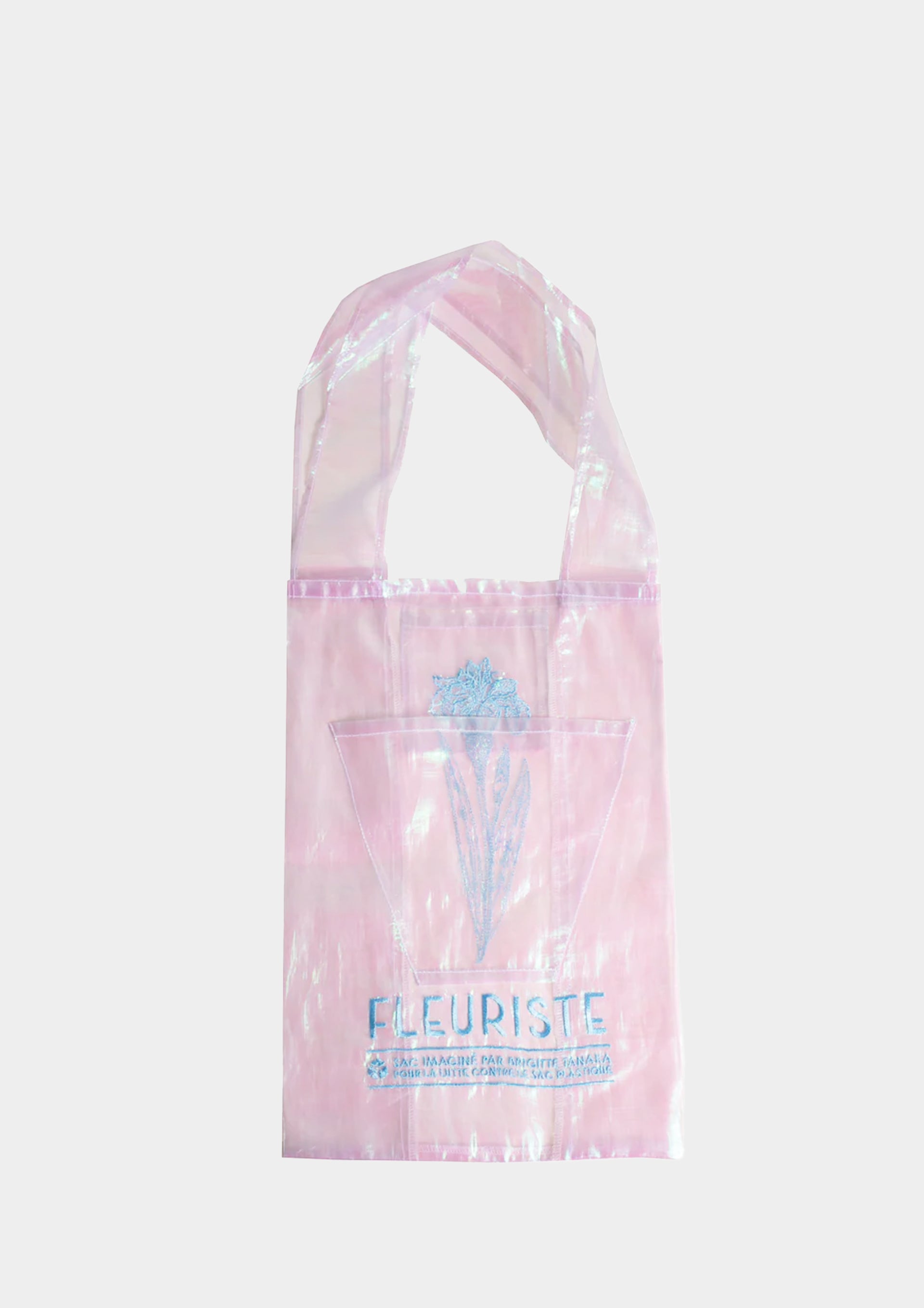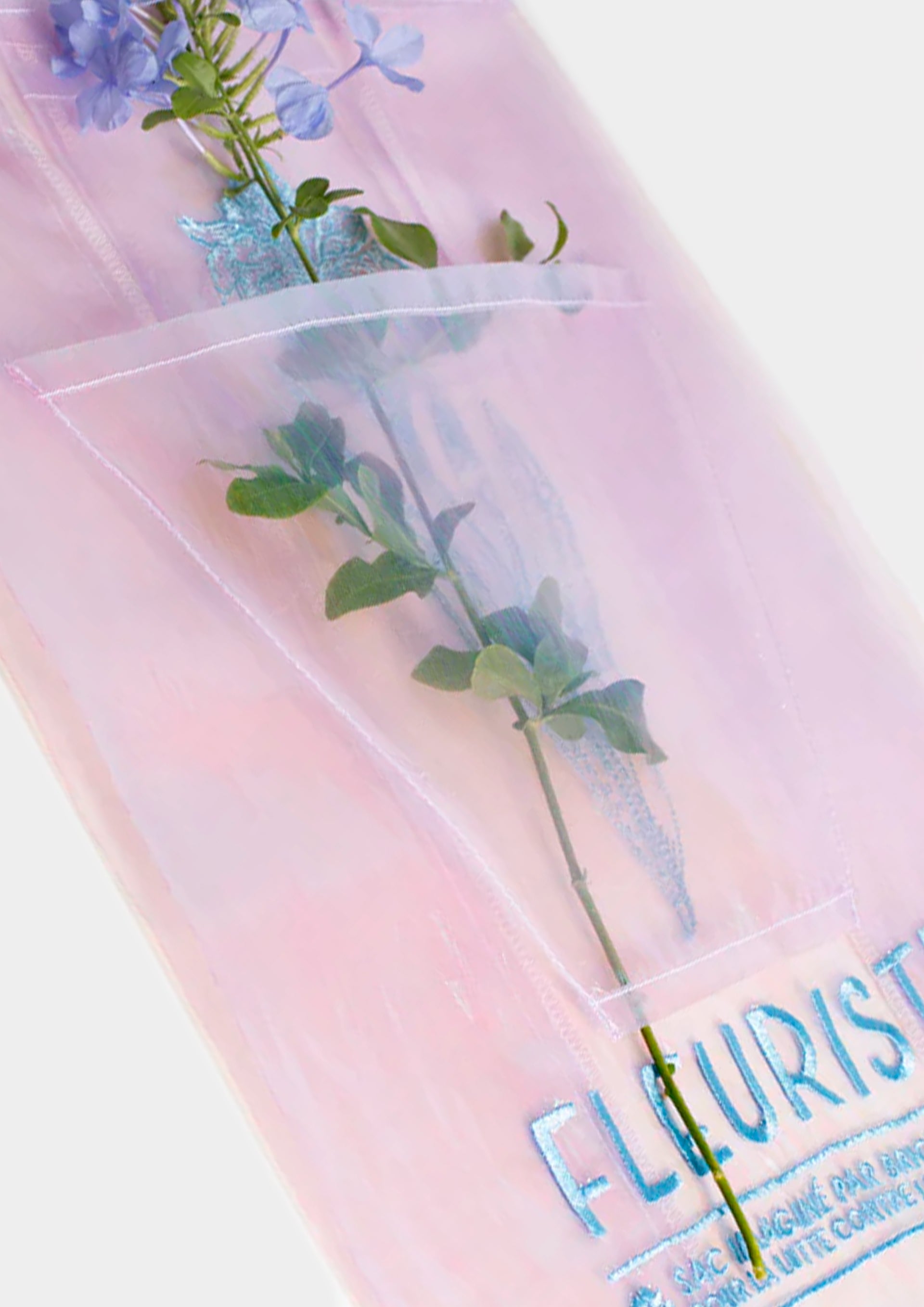 Questa borsa in organza con ricamo in cotone, reinterpreta con ironia e delicatezza un oggetto quotidiano. Ispirata al vintage, è un’alternativa originale ed ecologica ai sacchetti di plastica.