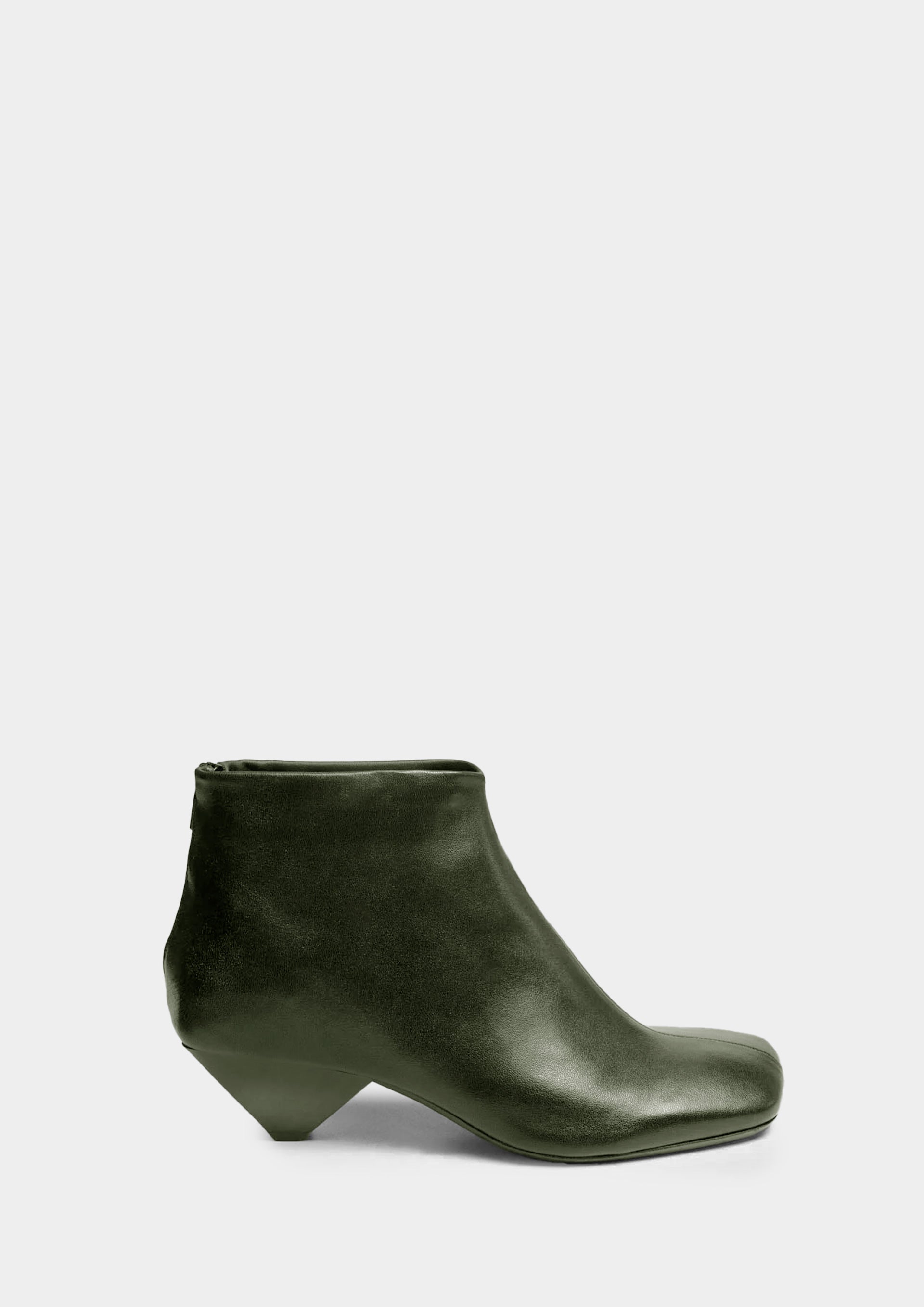 Stivaletto alla caviglia con la punta quadrata e tacco a piramide.