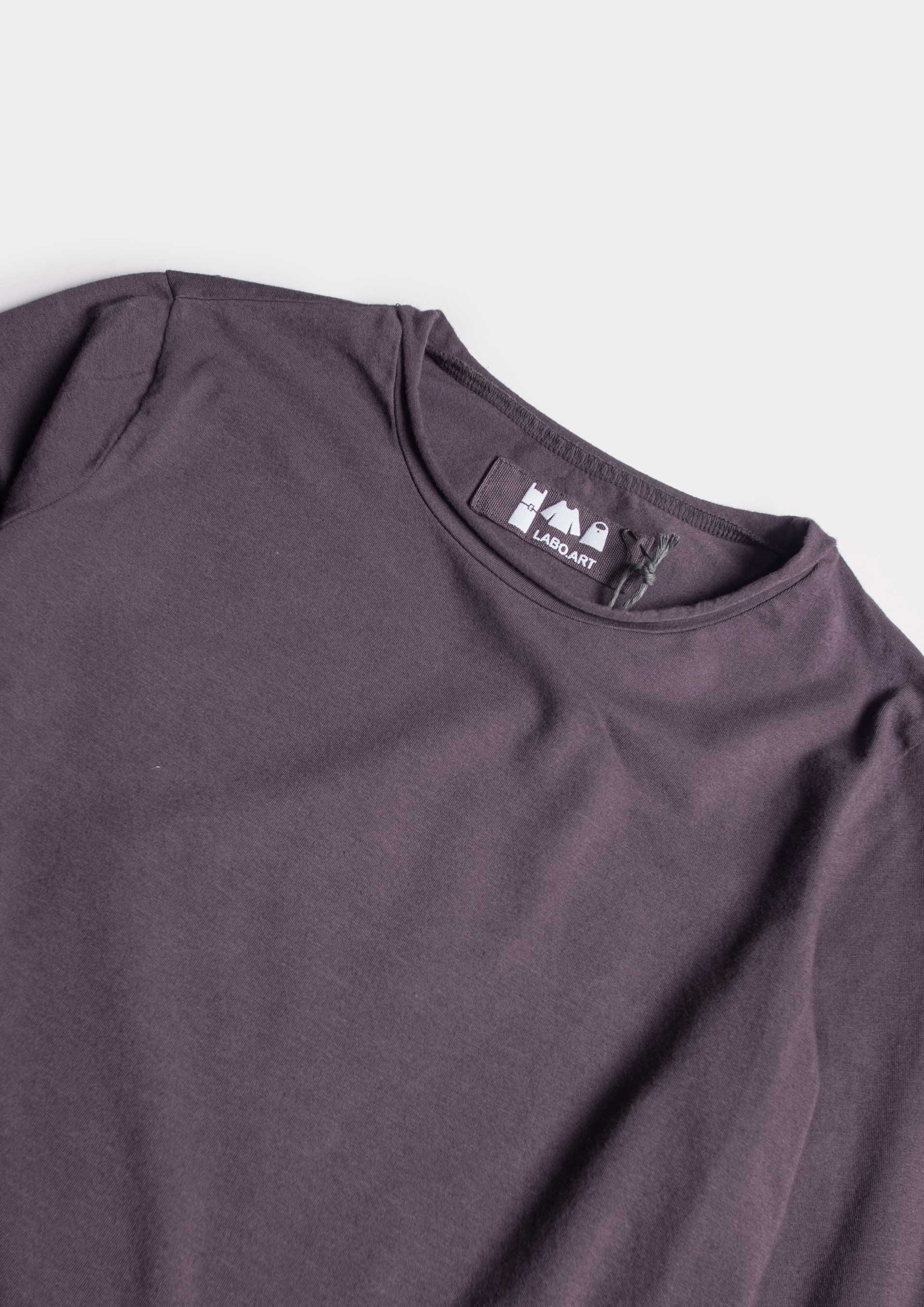 T-shirt basica a girocollo con finiture a taglio vivo.