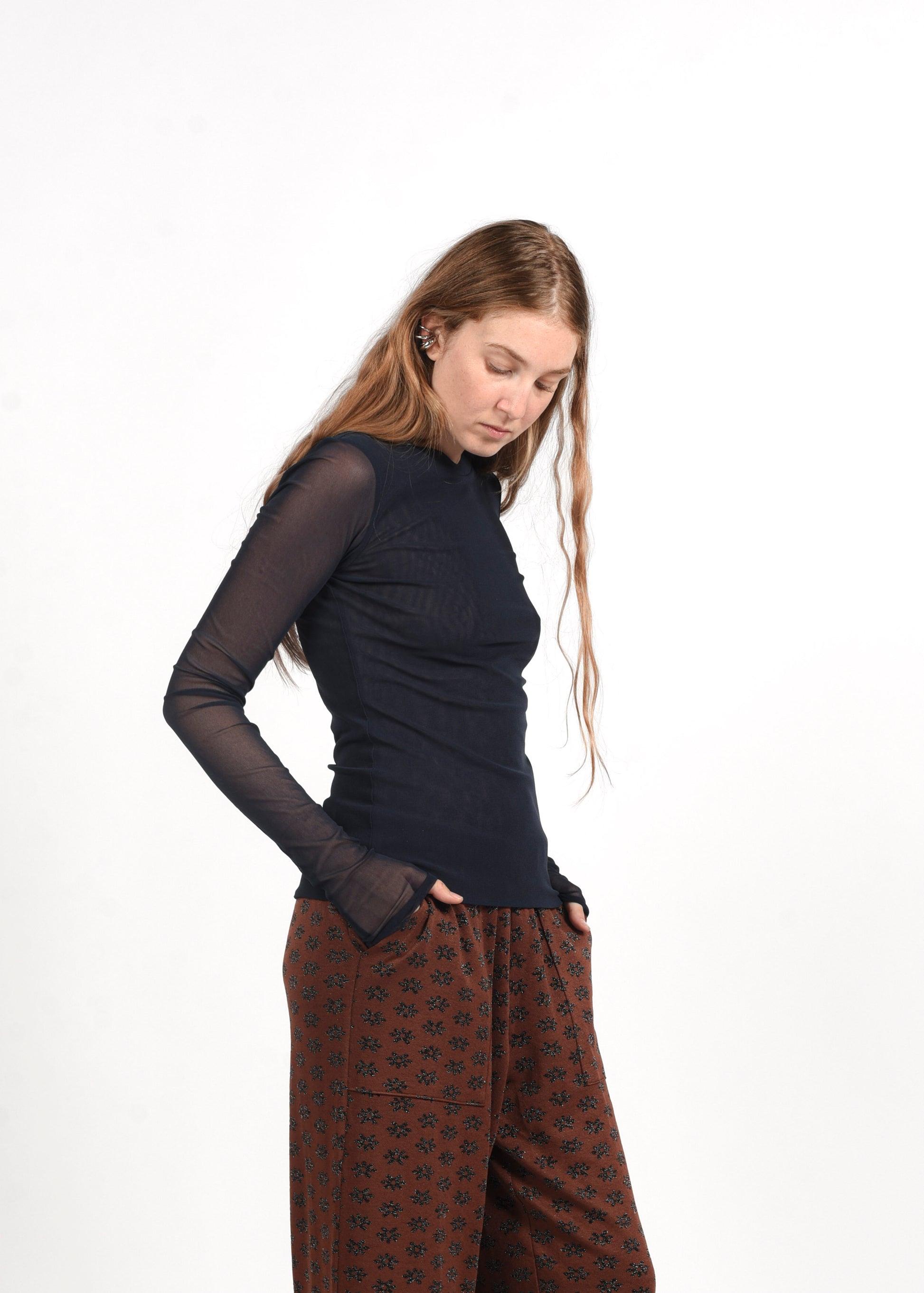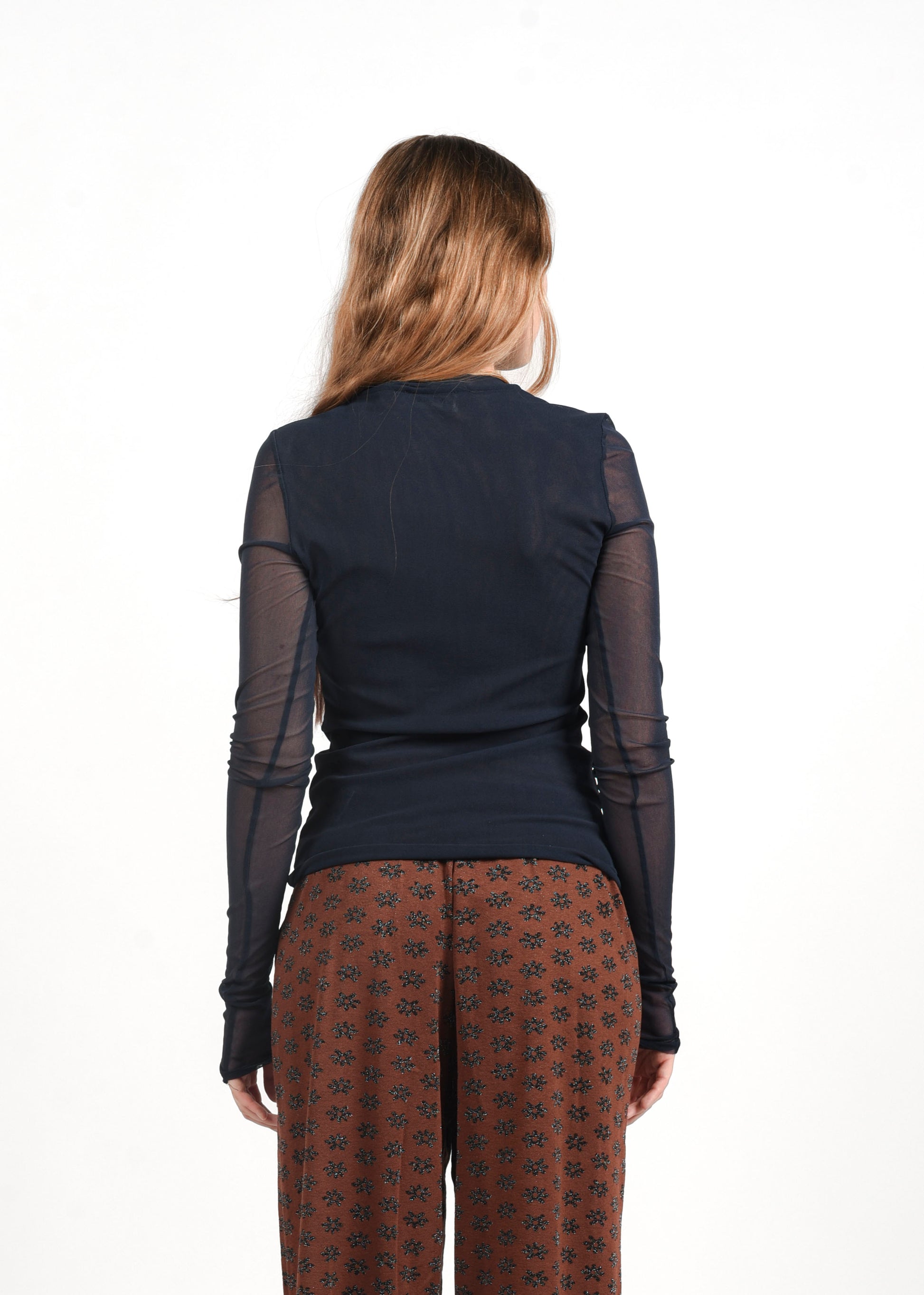 Maglia a manica lunga in microrete, con maniche trasparenti.